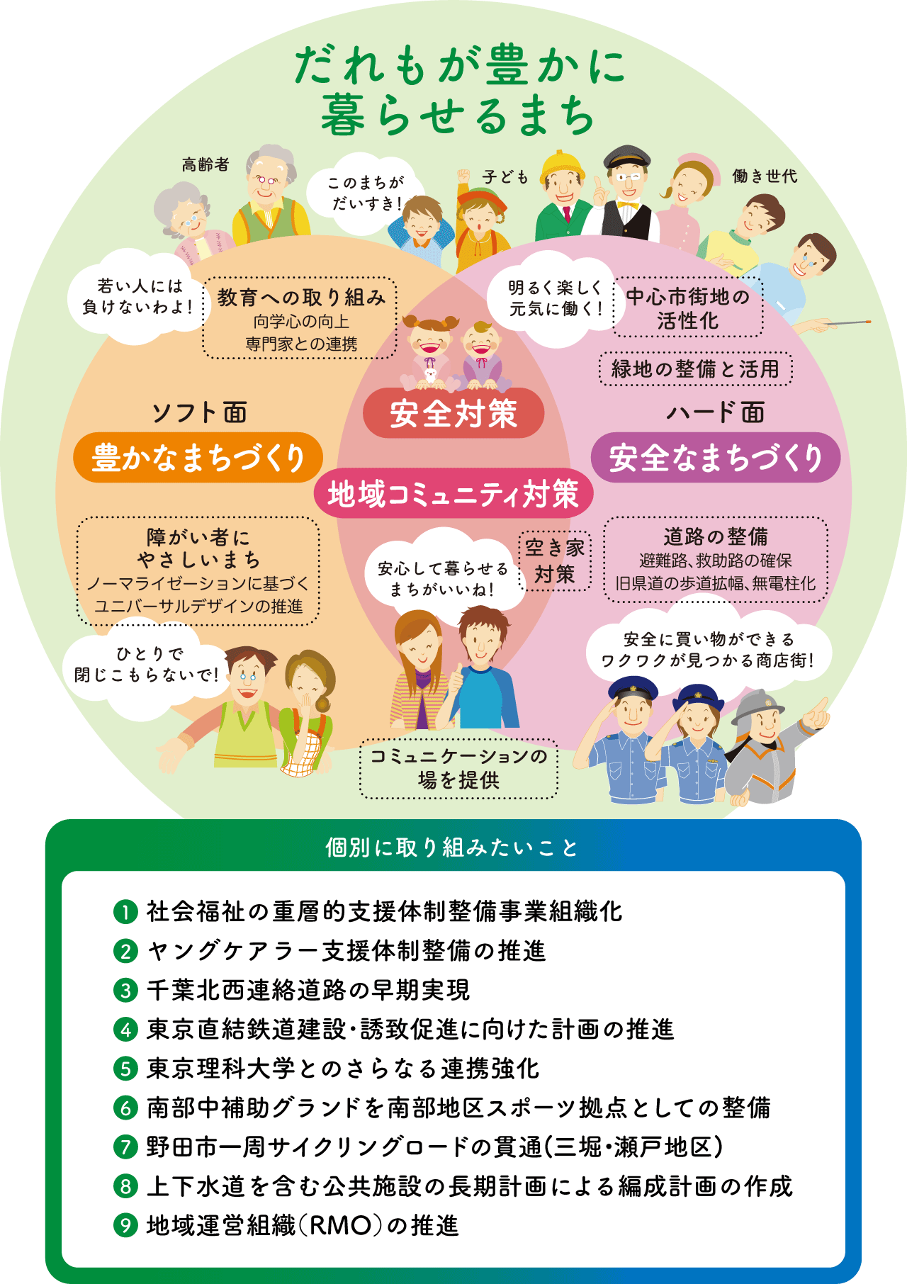 そういった「誰もがイキイキと暮らせるまち」「ずっと住み続けたいまち」を目指しています。